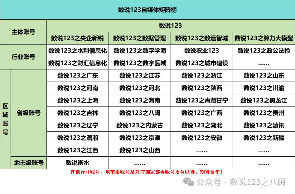 “數(shù)說123之八閩”是北京數(shù)說政通科技有限公司旗下自媒體矩陣“數(shù)說123”子賬號,依托數(shù)據(jù)、情報、自媒體、資源為省、市、縣三級數(shù)政局、運(yùn)營商、國有數(shù)智平臺公司、系統(tǒng)集成公司提供招投標(biāo)數(shù)據(jù)定制、商機(jī)捕獲、市場洞察、行業(yè)對標(biāo)、生態(tài)與渠道建設(shè)、解決方案提供、自媒體宣傳與賬號運(yùn)營等專業(yè)服務(wù)。